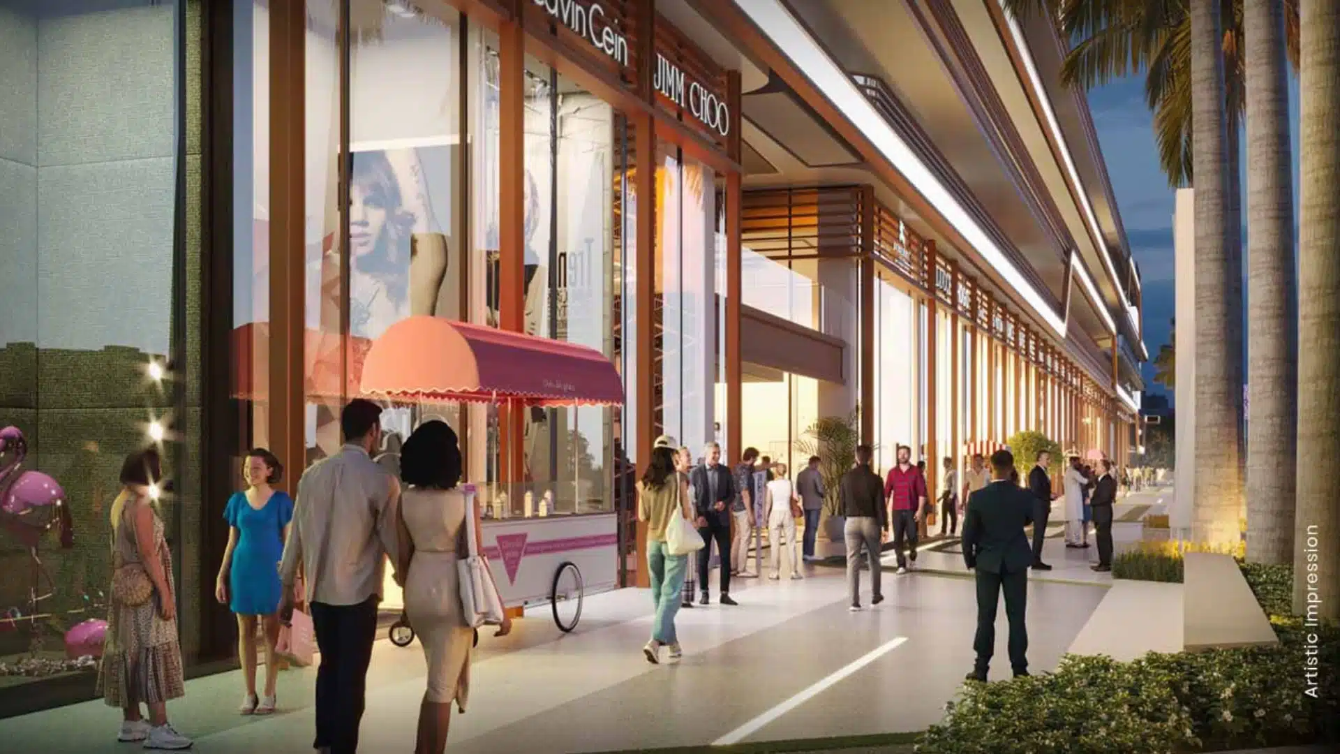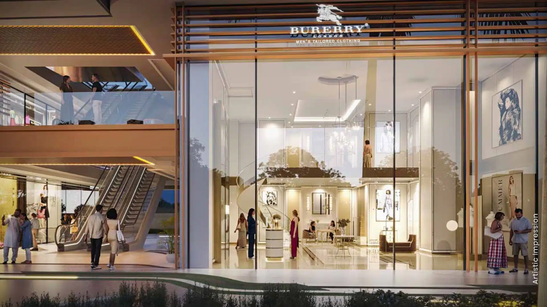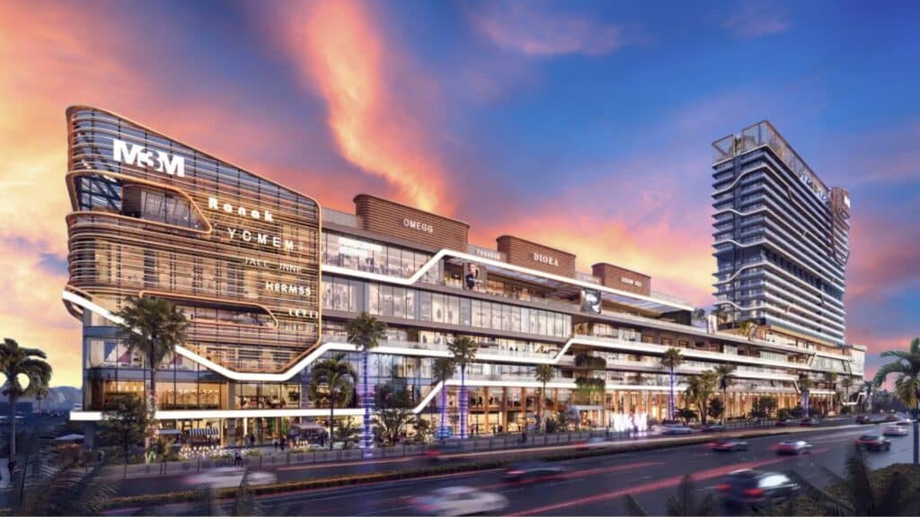 The project includes double-height retail shops (500-1000 sq.ft.), anchor stores, hypermarket, multi-cuisine food courts, and a mini-multiplex, all with glass facades for high visibility.